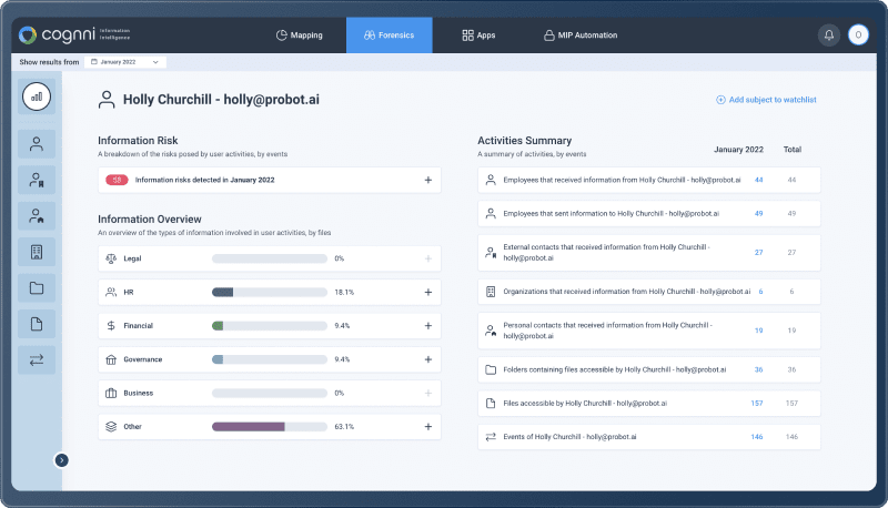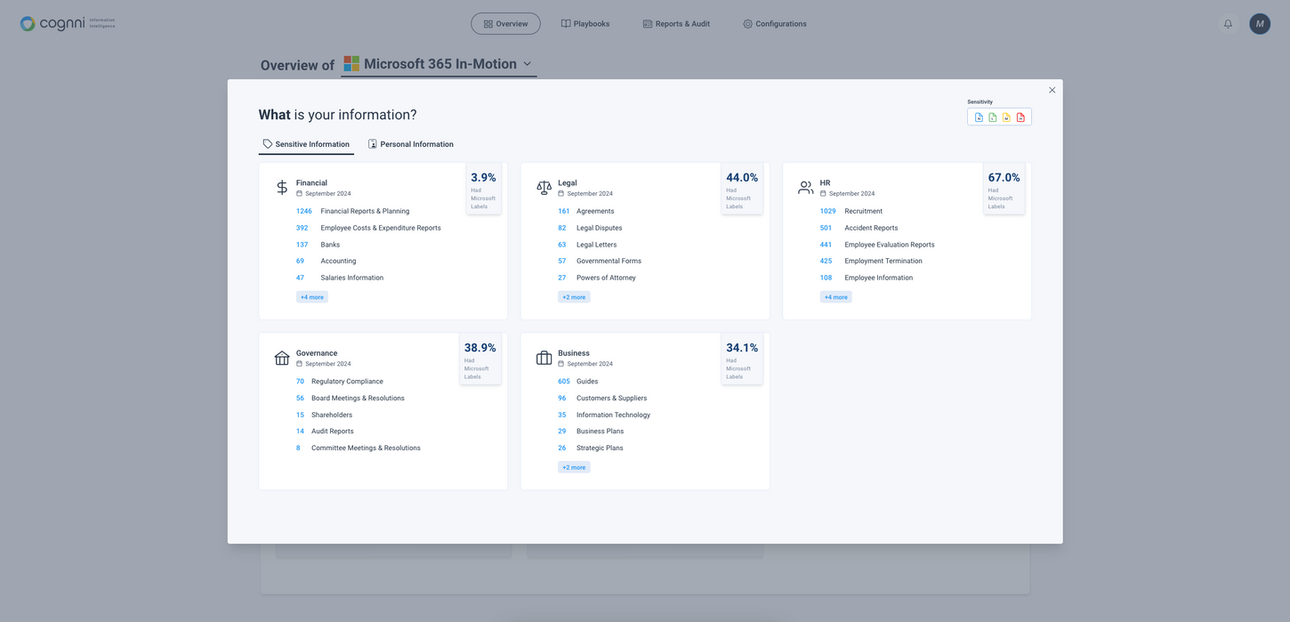 Cognni is an autonomous, AI-powered platform designed to address the challenges posed by lack of classified data or generic file labels in MS365. By leveraging cognitive machine learning, it comprehensively maps your MS365 information, gaining a deeper understanding of its context. This enables the automation of Purview information protection (MIP labelling) for data at rest and in-motion, ensuring accurate and context-rich file labelling.
